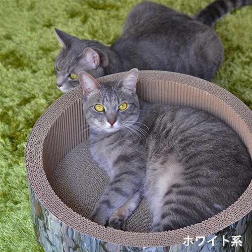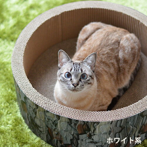 iCatオリジナル、愛猫がすっぽり丸くなってくつろげる、筒状タイプの爪とぎです。