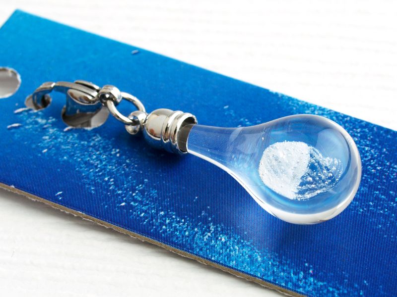 精巧なガラス細工 クラゲチャーム 本物により近づけるために、職人の技巧を凝らしたリアルなガラスのクラゲを、透明度の高い自慢の国産ガラスでとじ込めました。