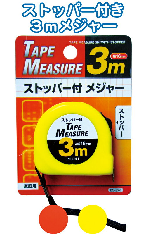 【まとめ買い=注文単位12個】3mメジャーストッパー付16mm幅 アソート(色おまかせ)29-241(se2b338)